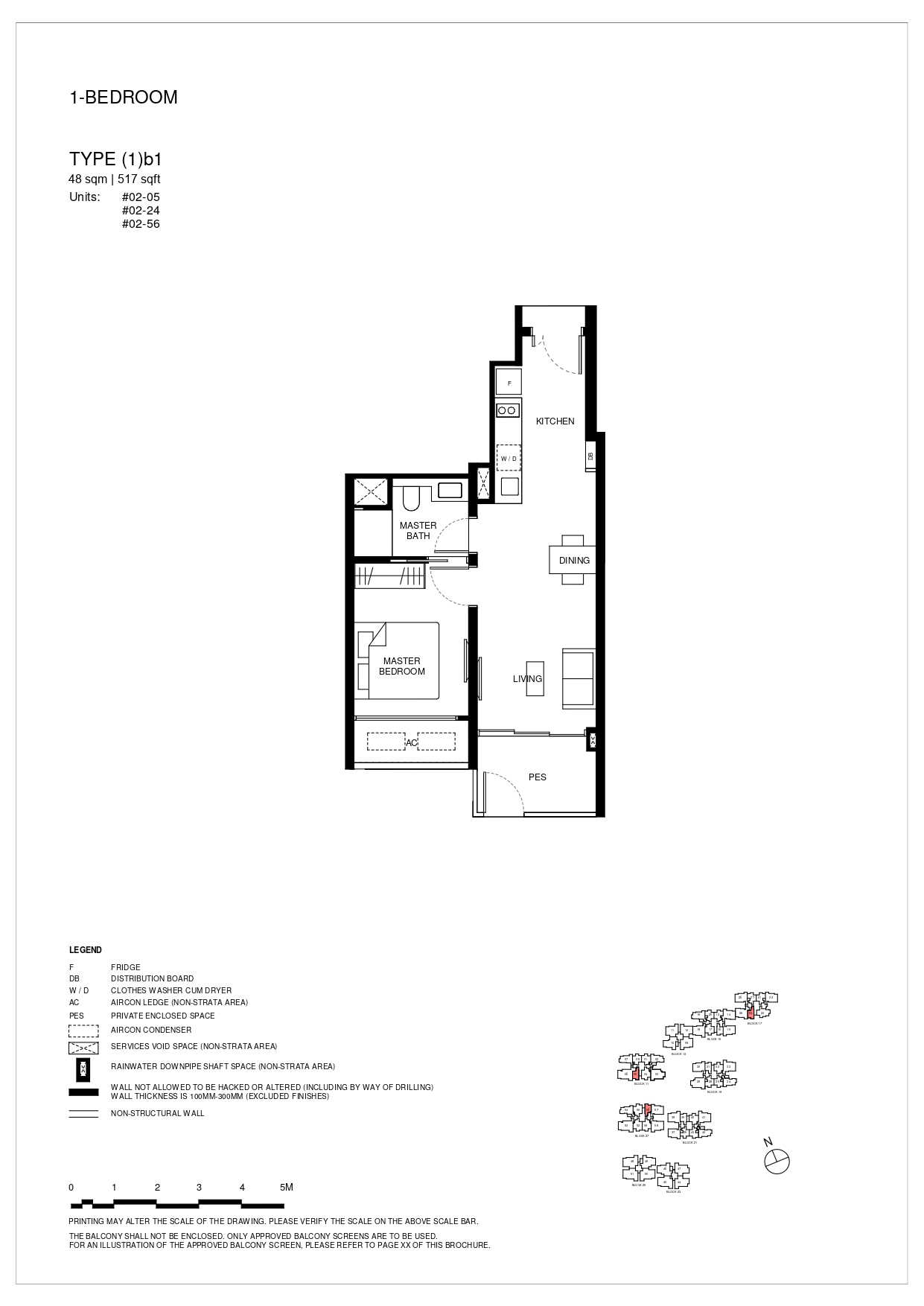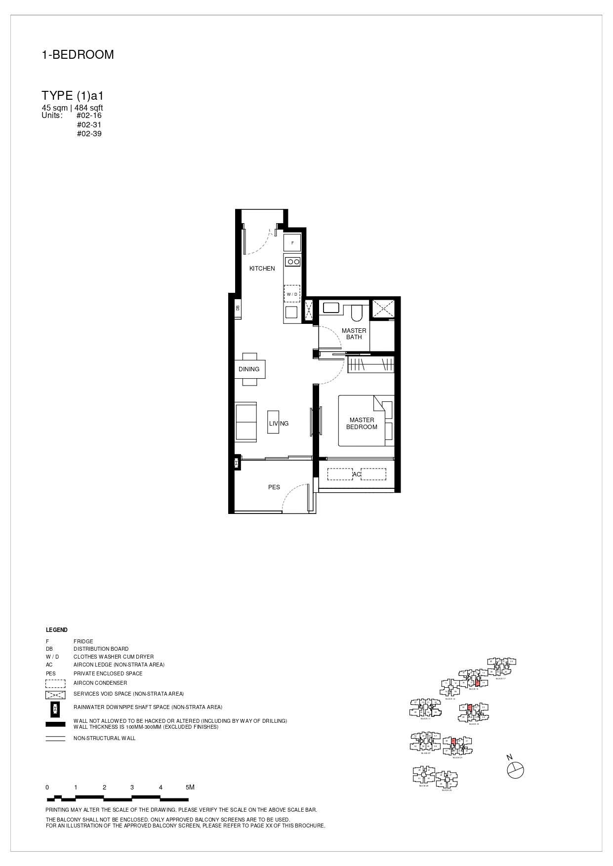 | 1 BEDROOM | (1)a1 | 484 | 3 | - |